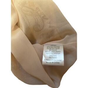 This Joie blouse combines soft floral patterning with subtle metallic threading to create a unique, feminine top that feels both polished and playful. It features a delicate ruffle collar, v-neckline with tie closure, and fluttery sleeves for a romantic silhouette. The soft lining provides coverage and comfort, allowing the flowy fabric to drape gracefully. The golden yellow hue with metallic shimmer catches the light beautifully, making this blouse a standout piece for both daytime and evening wear. Ideal for the office when paired with trousers or a pencil skirt, and equally suited for brunch dates, dinners, or special events when styled with denim or tailored separates. Its versatile design allows it to be layered under a blazer for fall or worn alone in warmer weather, making it a year-round staple. A timeless blouse that blends elegance with everyday wearability.