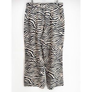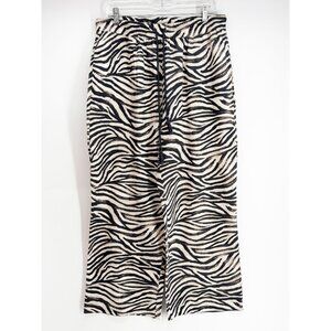 Joie Zebra Print Linen Viscose Blend Drawstring Wide Leg Casual Pant L