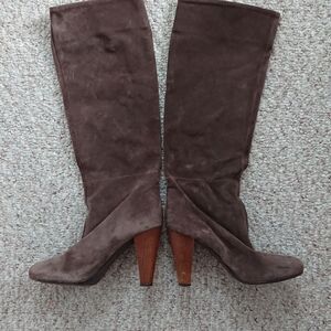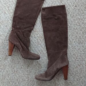 Joie brown knee high leather pull on boots wood block heel size 36.5