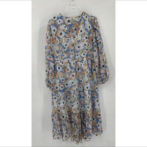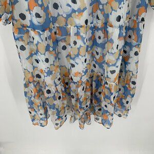 Joie chiffon printed floral maxi midi dress floaty flowy shift ruffle new Large