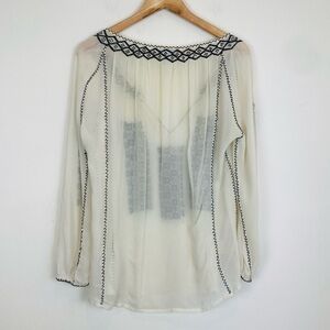 Joie cream colored silk chiffon sheer embroidered boho blouse. Small
