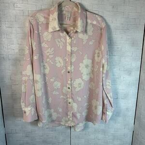 Joie floral blouse soft satin long sleeve button up lavender & cream feminine
