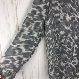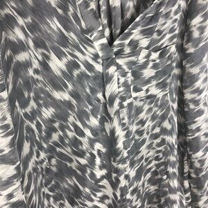 Joie gray and white leopard 100% silk blouse. Size medium. Gently preloved in great condition with one small spot on it that needs to be cleaned- see photo of this small area.