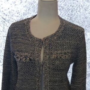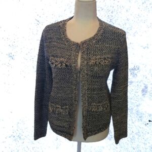 Joie linen blend nubby fringe pockets lightweight neutral career blazer sz XS