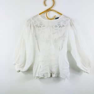 Joie off-white 100% ramie balloon sleeve blouse NWT