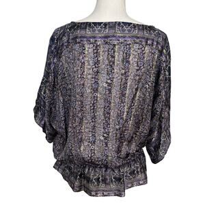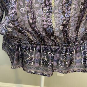 Joie purple and gold silk and metallic sheer marcana peplum top size L