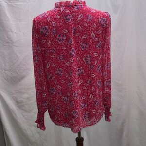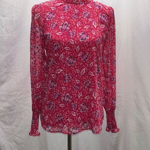 Joie red/pink floral shirt/top ruffle summer Sz M
