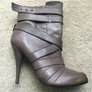 Joie santo crisscross leather bootie gold Cap toe wrap straps chocolate taupe