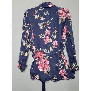 Joie anasophia silk navy floral Wrap blazer top Floral-print 100% Silk Detachable belt Front patch pocket