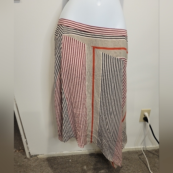 joie red/black stripes lightweight asymmetrical side zip skirt. pre owned no rips or stains