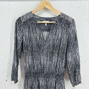 Joie size XS Black White Smocked Waist Mini Dress in very good preowned condition.