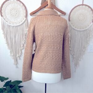 Elevate your wardrobe with this stylish Joie cardigan! This super soft, tan, open-knit cardigan features a classic collared neckline and a button-front closure, perfect for layering. In excellent condition and ready to wear.