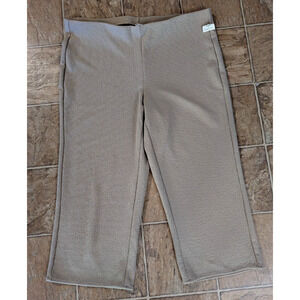 size 2X, pull on, stretchy, wide leg, knit, pants, high rise, no pockets, textured fabric, a leisure, Brand new, partial store tag. This is beige to tan in color, Darker than pics.