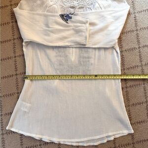 Joie white guazy tunic cover up with blue embroidery detail NWOT XS