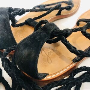 Beautiful black leather flat sandals by Joie in a gladiator style with tassels. Good condition! Size 36