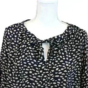 Joie Black w/ White Dots Long Sleeve 100% Silk Tie-Neck Blouse Size Medium