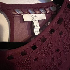 Gorgeous, detailed Joie Gaiane burgundy sheer blouse- color officially called raisin