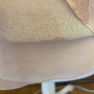 Elegant blouse with a soft pink and cream design. Ideal for versatile styling.