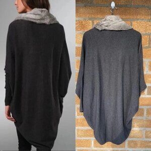 Drapey long sweater detachable collar. This cardigan sweater features a detachable fur collar. Open placket and rounded hem. Ribbed edges. Long dolman sleeves. * 34" long, measured from shoulder. * Fabrication: Fine knit/fur. * Shell: 40% nylon/35% rayon/20% wool/5% cashmere. * Collar: 100% rabbit fur.