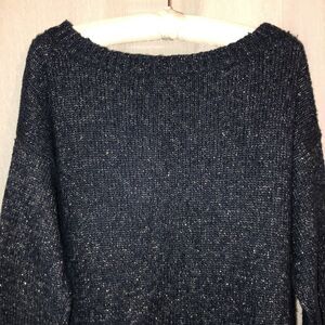 Joie S Indigo Blue Silver Metallic Knit Alpaca Blend Pullover Sweater