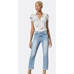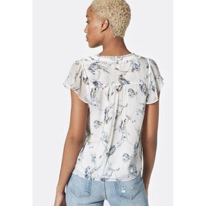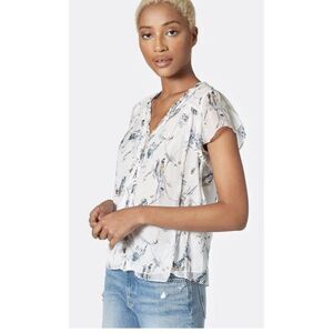 Joie Saesha Silk Top in Porcelain White Blue Floral Short Sleeve Blouse S $228