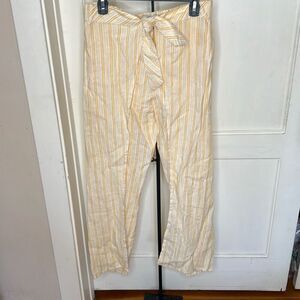 Joie Sahira Linen Stripe Wrap Pants Cornsilk Yellow Size Small
