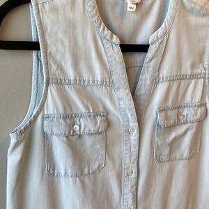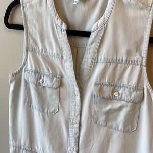Joie Soft chambray mini dress XS tie at waist sleeveless 33” shoulder to hem