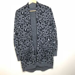 Joie Sz S Gray Leopard Print Sweater Cardigan