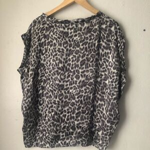 Joie leopard print 100% silk oversized boxy pullover blouse animal print