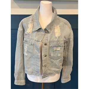 Womens Denim Jacket with Fringe Rhinestones Long Sleeve Distressed Ripped Denim Jackets with Pockets