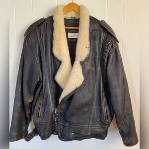 Joint Intl Men’s Bomber Jacket 42 Black Leather Harley Davidson Sherpa *Read*