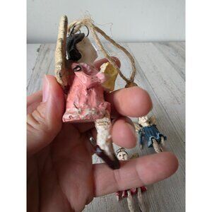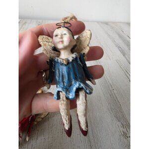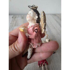 Jointed Angel cherub ornament vintage rustic crackle set are
