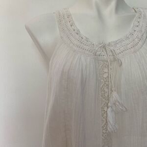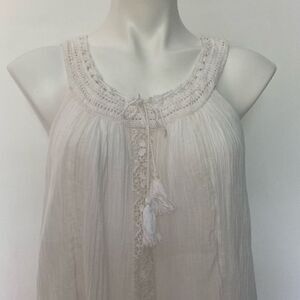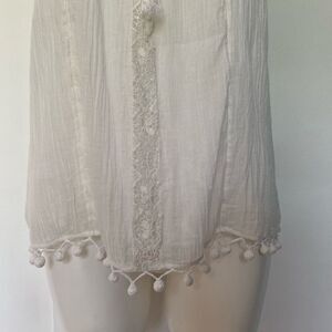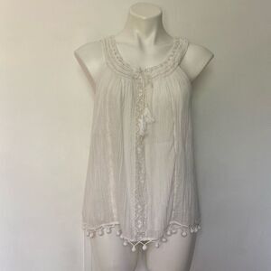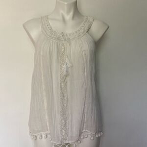 Cute boho flowy tank top with Pom Pom details along bottom edge.