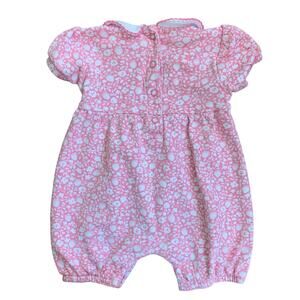 Pink and white Peter Pan collar strawberry print thick cotton romper