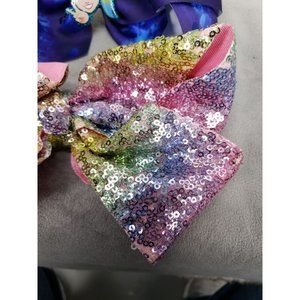 Jojo Siwa Oversized Clip In Girls Bows With Scrunchies Blue and Pink Glitter