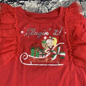 Jojo Siwa XS 4/5 Christmas T-shirt Heart Tulle Top Sequins "Slayin it"