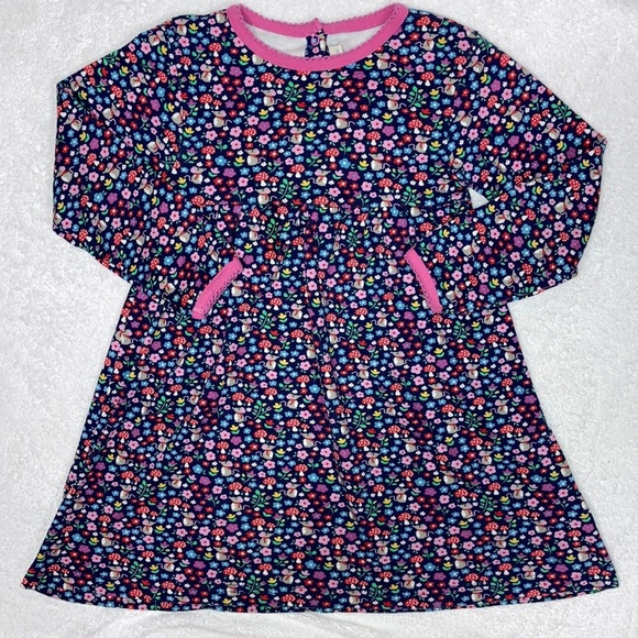 Jojo maman bebe mouse floral mushroom navy long sleeve dress 4-5 yrs