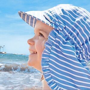 Jojo Maman Bebe Pretty Flap Hat SPF 50 0-6 months blue with white stripes