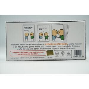 Joking Hazard is the outrageously funny adult card game from the creators of Cyanide & Happiness. This 5th print 2016 edition pits 3–10 players against each other in a comic-creating challenge, where you compete to finish awful 3-panel comic strips with millions of twisted combinations. The game includes mature content and is intended for ages 18+. Box has some minor shelf wear but contents are in very good condition. Perfect for game nights with friends who appreciate dark humor. IC Code: BGS-0277
