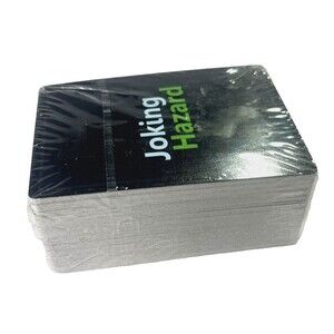 Joking Hazard, the offensive party card game from Cyanide & Happiness, comes as a complete set and is ready for play or collection. This set includes all original cards and components, offering the full experience of creating wild, inappropriate, and unpredictable comic strips. The cards are in good condition with normal light handling wear, and the box shows minor shelf wear but remains solid and fully functional. This is an ideal pick for fans of dark humor or anyone looking to add a popular adult party game to their collection.