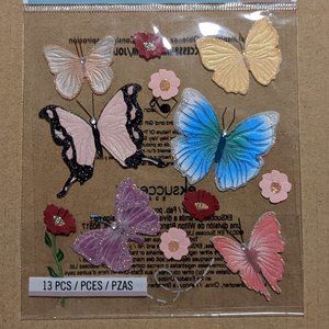 Includes 13 separate stickers, all 3D, butterflies and flowers.