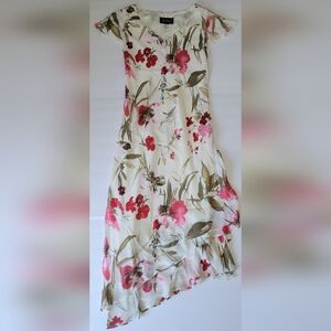 Jolibel Vintage Cream Floral Tiered Ruffle Asymmetrical Flutter Sleeve Y2K Dress