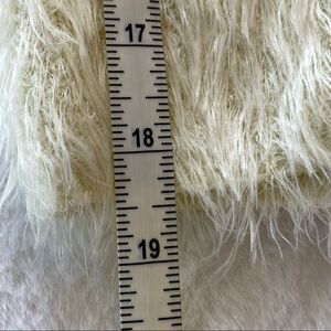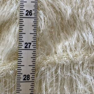 Jolibel Cream Open Front Cardigan Size Medium. Excellent used condition. Very soft fuzzy material. Fringe on bottom hem. Measures chest 50", length 27.5", sleeve 18.5".