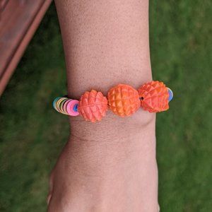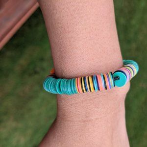 Handmade mulitcolored bracelet with elastic band. American jewelry designer Jolie Altman's one-of-a-kind pieces incorporate found materials - sourced from materials collected from across the globe. Crafted from beads bracelet layers well with other bracelets.
