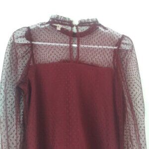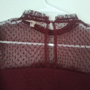 Jolie & Joy Burgundy Lace Mesh Blouse women's size S