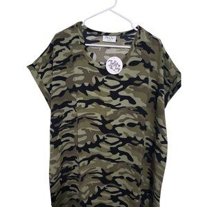 Jolie & Joy Camo Cuffed Sleeve T Shirt Dress - Olive - Size 2X
