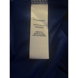 This beautiful Jolie & Joy dress in size small will make you stand out at any occasion. The stunning blue color and colorful theme is perfect for a party, cocktail event, or even a formal occasion. The dress is made of a lightweight and stretchy satin fabric, with an asymmetric hemline and a flattering A-line shape that is slimming and comfortable to wear.