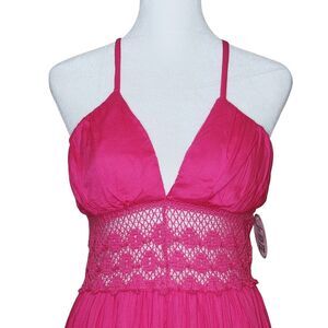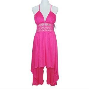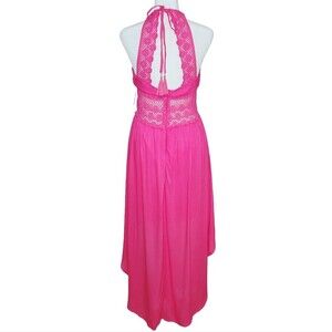 Jolie & Joy Hi Low Halter Dress Embroidery Embellishments Bra Insert Pink Medium