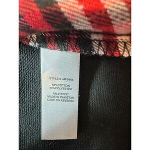 This hoodie jacket from Jolie & Joy features a classic red and black plaid pattern combined with a cozy fluffy lining in the hood only. The jacket part is t-shirt material and considered lightweight. It's ideal for layering during colder seasons. The design provides a relaxed fit for added comfort.