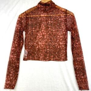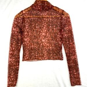 Jolie & Joy M Mesh Top Sheer Turtleneck Animal Print Cyber Glam Y2K Alt Cropped